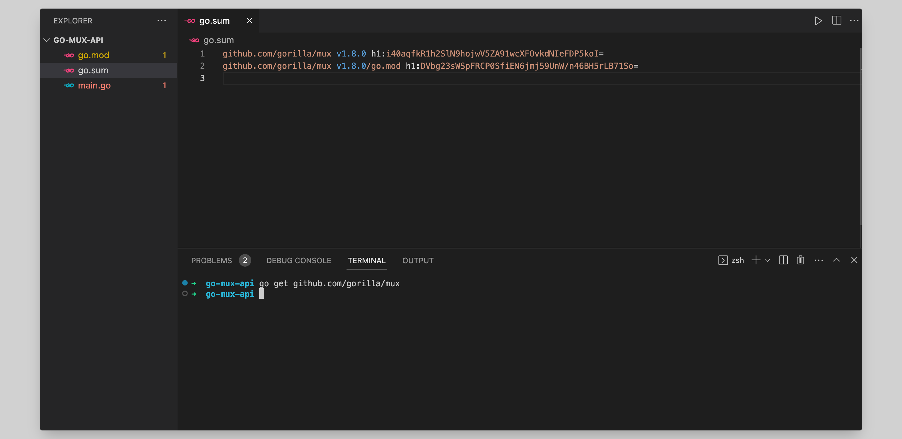 After you execute the above command it will add the dependencies to go.mod the file and add auto-create a go.sum file, which works as a checksum for the dependencies.