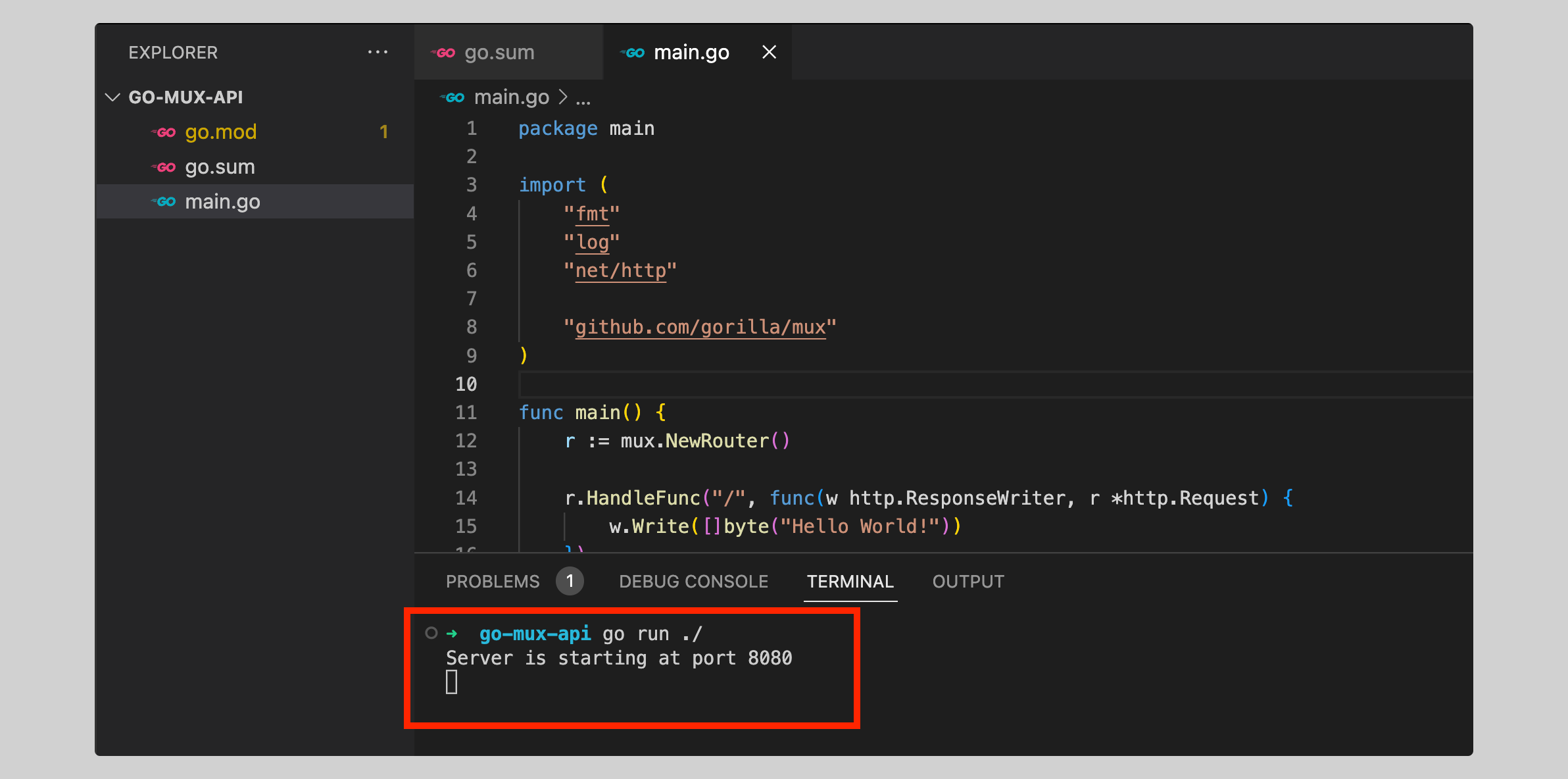 Now that we have everything set up, including mux, let's start writing the logic for our API. To do this, open the main.go file and import the mux and some build modules in main.go to use them in further steps.
