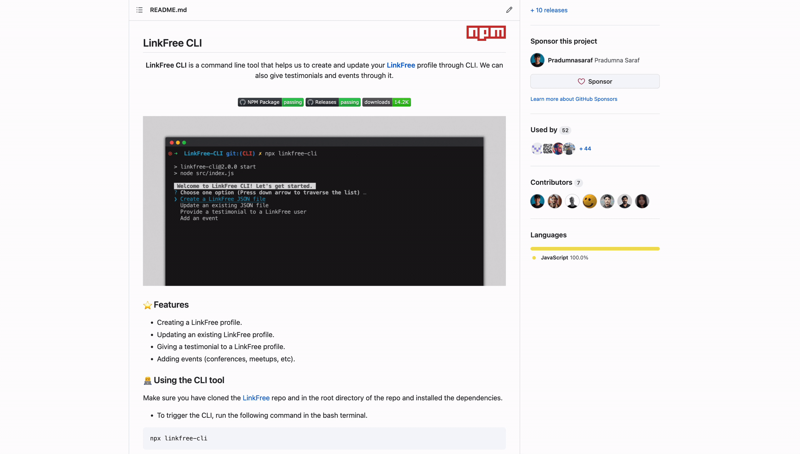 Building a community around your project is the best way to create awareness and establish a communication channel between you and other contributors. It can also promote collaborations and make it easier for contributors to seek help. You can create a community on platforms such as Discord, Slack, Telegram, or any other suitable platform. A great example of a community-driven project is LinkFree from EddieHub.
